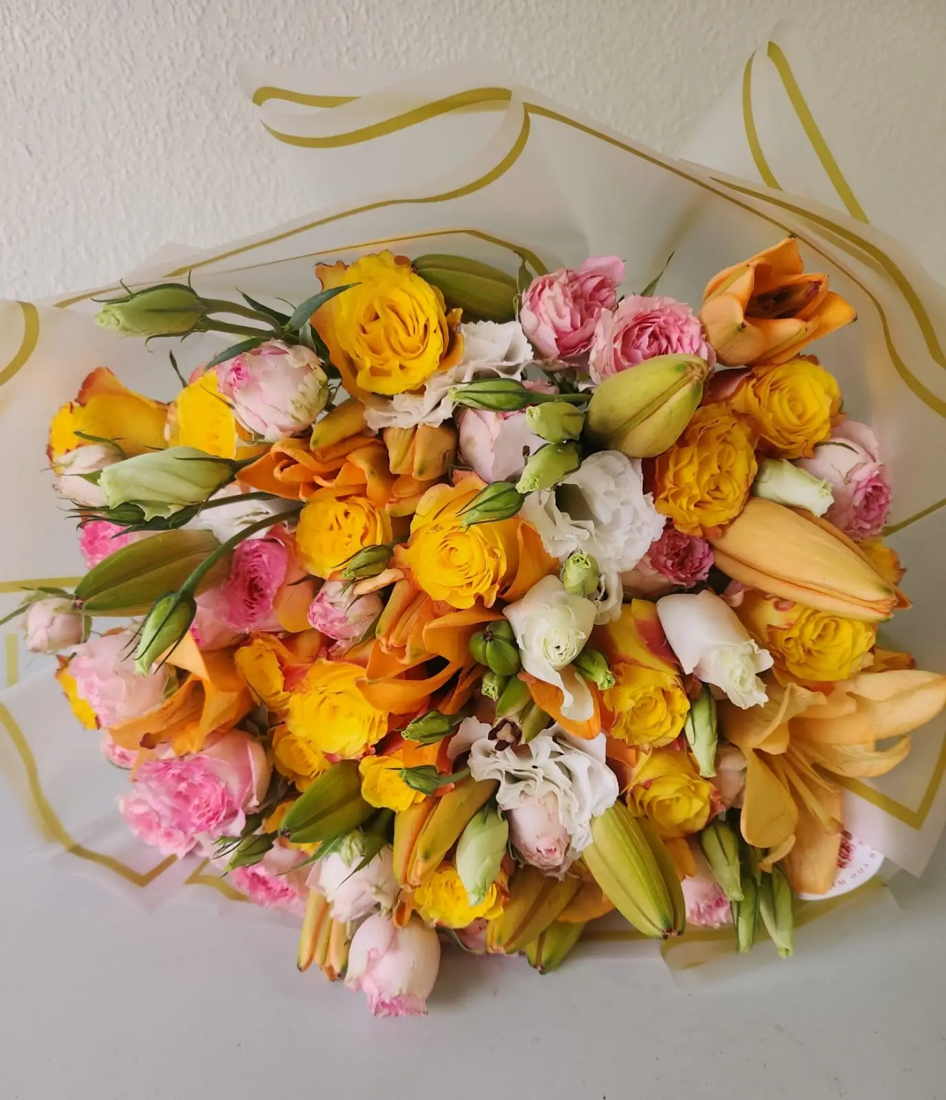 Celebrate. Lisianthus, Roses and Lillies.